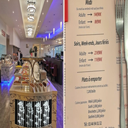 Le menu de 608 Wok Panda couvre une large gamme de plats. Salades croquantes, sushis frais et fruits de mer sont mis à l'honneur. Le buffet permet de choisir entre plusieurs entrées, woks, et plats chauds. Un coin grillades est également présent. Des options végétariennes sont proposées, rendant le repas accessible à tous. Les desserts terminent le repas sur une note sucrée.